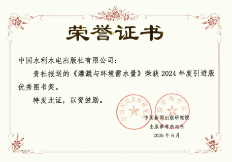 近日,第二十四屆輸出版引進版優秀圖書評選結果公布,我集團《灌溉與環境需水量》(責任編輯:宋曉 劉向杰)榮獲2024年度引進版優秀圖書獎。